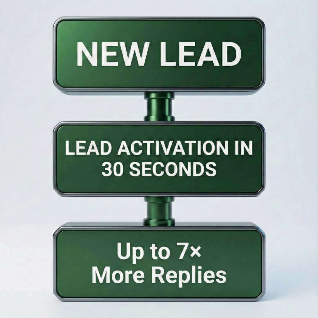 Instant Lead Activation: System automatically engages new leads within 30 seconds, driving up to more replies compared to responding after 20 minutes or later